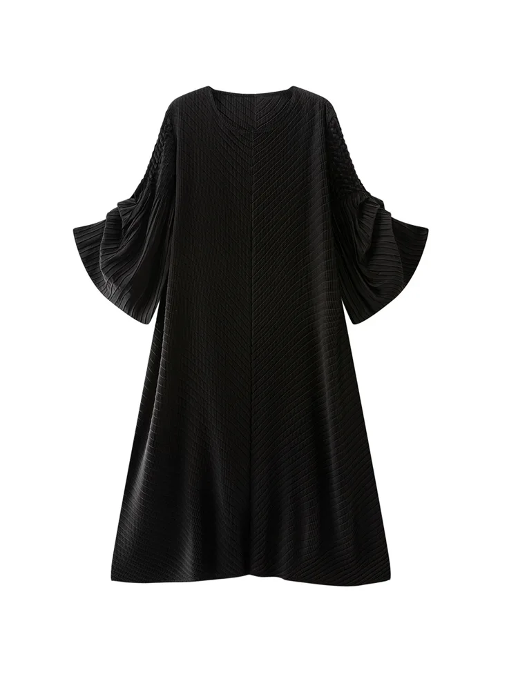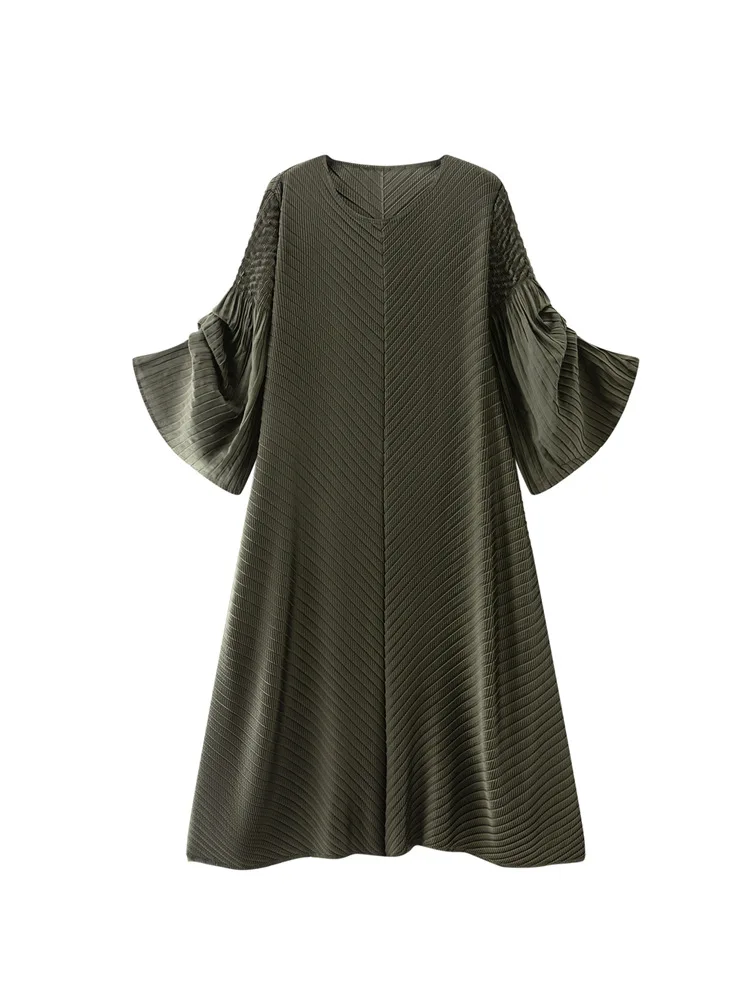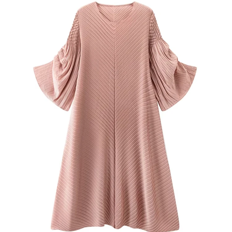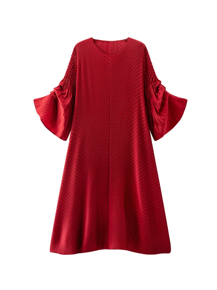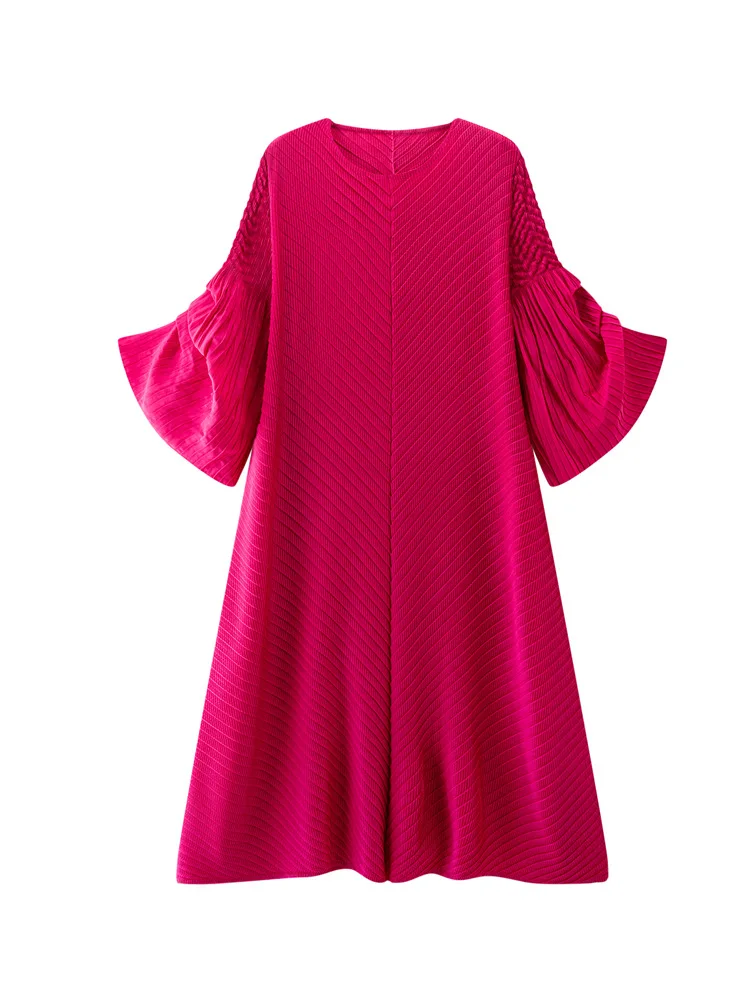 2025 ODM Spring/Summer High-End Women's Dress Miyake Inspired Solid Pattern Elegant Commuter Waist Large Swing Skirt Chiffon